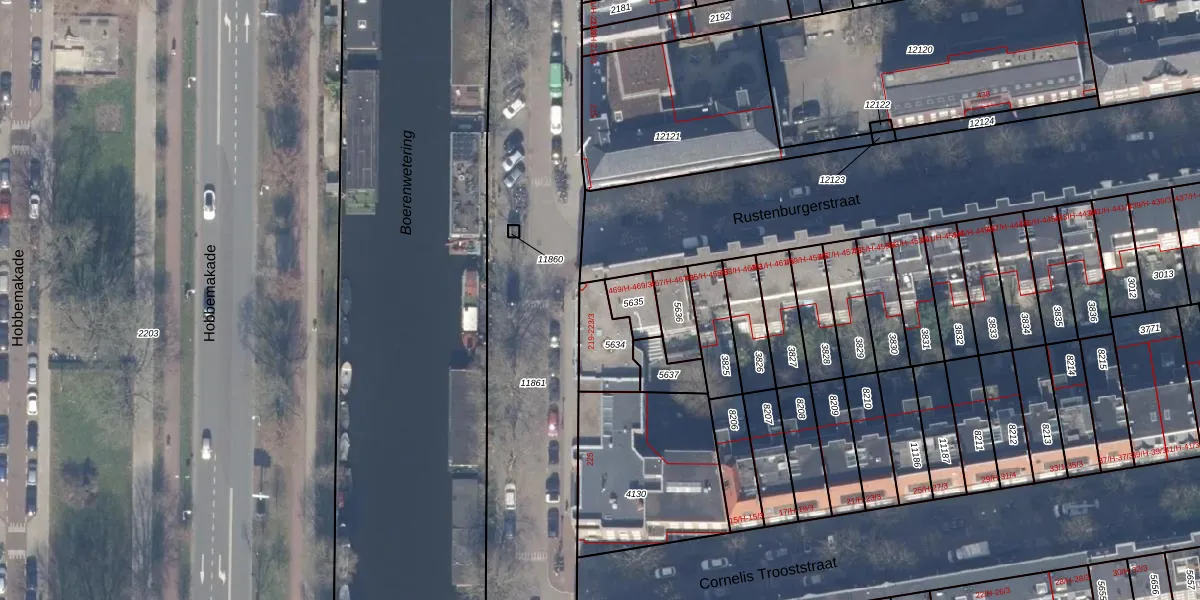 Het adres is gelegen op perceel 5634 in de sectie V en de kadastrale gemeente Amsterdam. De kadastrale aanduiding is aldus ASD18-V-5634. Het perceel is 152 m² groot. Dat is kleiner dan de gemiddelde perceeloppervlakte in Amsterdam, dat op 559,23 m² ligt. Het grootste perceel in de kadastrale gemeente is 12,5 ha. Het kleinste perceel heeft een oppervlakte van 0 m². Op het perceel zijn 8 adressen aanwezig. In de Basisregistratie Kadaster (BRK) werden de grenzen van het perceel geregistreerd op 21-09-2006.