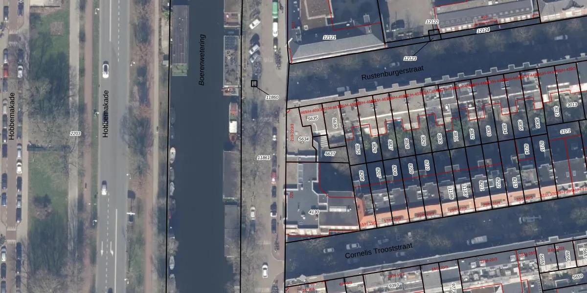 Het adres is gelegen op perceel 5634 in de sectie V en de kadastrale gemeente Amsterdam. De kadastrale aanduiding is aldus ASD18-V-5634. Het perceel is 152 m² groot. Dat is kleiner dan de gemiddelde perceeloppervlakte in Amsterdam, dat op 558,8 m² ligt. Het grootste perceel in de kadastrale gemeente is 12,5 ha. Het kleinste perceel heeft een oppervlakte van 0 m². Op het perceel zijn 8 adressen aanwezig. De huidige grenzen van het perceel zijn digitaal in de Basisregistratie Kadaster (BRK) geregistreerd op 21-09-2006.
