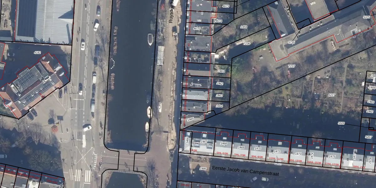 Het perceel waarop Ruysdaelkade 51-H staat heeft een oppervlakte van 163 m². Dit is een middelgroot perceel. De perceeloppervlakte wordt geregistreerd door het Kadaster. Gedetailleerde informatie over de maten van dit perceel kunt u vinden in het rapport Kadastrale kaart met maatvoering van Ruysdaelkade 51-H.