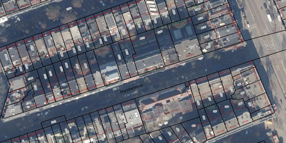 Het perceel waarop Ruysdaelstraat 102-3 staat heeft een oppervlakte van 504 m². Dit is een groot perceel. De perceeloppervlakte wordt geregistreerd door het Kadaster. Gedetailleerde informatie over de maten van dit perceel kunt u vinden in het rapport Kadastrale kaart met maatvoering van Ruysdaelstraat 102-3.