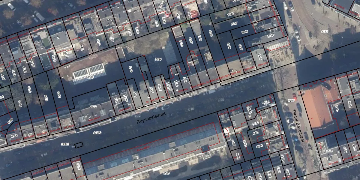 Het perceel waarop Ruysdaelstraat 42-3 staat heeft een oppervlakte van 87 m². Dit is een klein perceel. De perceeloppervlakte wordt geregistreerd door het Kadaster. Gedetailleerde informatie over de maten van dit perceel kunt u vinden in het rapport Kadastrale kaart met maatvoering van Ruysdaelstraat 42-3.