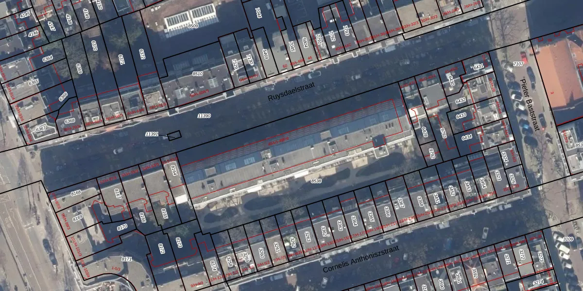 Het perceel waarop Ruysdaelstraat 49-D-5 staat heeft een oppervlakte van 2438 m². Dit is een zeer groot perceel. De perceeloppervlakte wordt geregistreerd door het Kadaster. Gedetailleerde informatie over de maten van dit perceel kunt u vinden in het rapport Kadastrale kaart met maatvoering van Ruysdaelstraat 49-D-5.