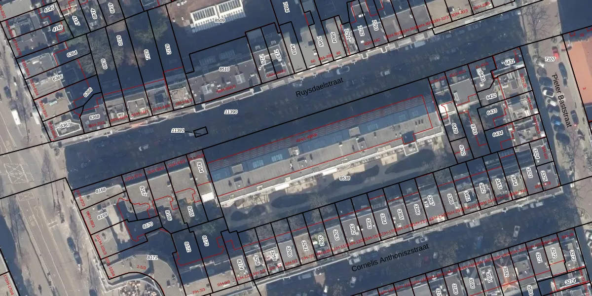 Het perceel waarop Ruysdaelstraat 49-C-6 staat heeft een oppervlakte van 2438 m². Dit is een zeer groot perceel. De perceeloppervlakte wordt geregistreerd door het Kadaster. Gedetailleerde informatie over de maten van dit perceel kunt u vinden in het rapport Kadastrale kaart met maatvoering van Ruysdaelstraat 49-C-6.
