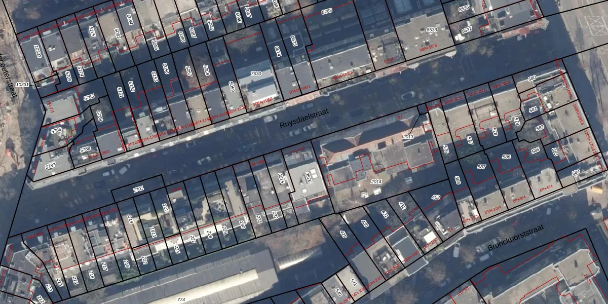 Het perceel waarop Ruysdaelstraat 71-A staat heeft een oppervlakte van 282 m². Dit is een middelgroot perceel. De perceeloppervlakte wordt geregistreerd door het Kadaster. Gedetailleerde informatie over de maten van dit perceel kunt u vinden in het rapport Kadastrale kaart met maatvoering van Ruysdaelstraat 71-A.