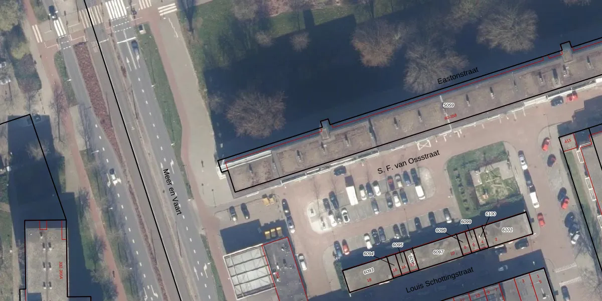 Het perceel waarop S. F. van Ossstraat 352 staat heeft een oppervlakte van 1820 m². Dit is een zeer groot perceel. De perceeloppervlakte wordt geregistreerd door het Kadaster. Gedetailleerde informatie over de maten van dit perceel kunt u vinden in het rapport Kadastrale kaart met maatvoering van S. F. van Ossstraat 352.