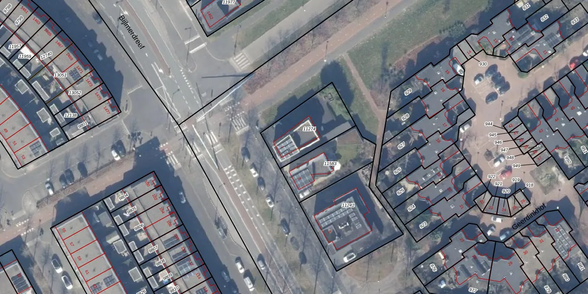 Gebruik de zoekbalk of klik op een perceel voor informatie over de adressen binnen dit perceel.