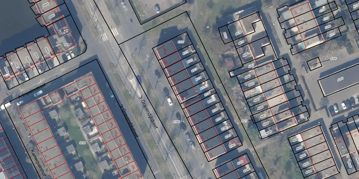 Gebruik de zoekbalk of klik op een perceel voor informatie over de adressen binnen dit perceel.