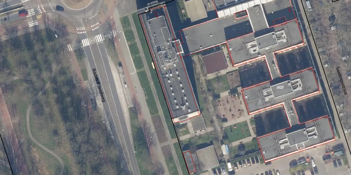 Het perceel waarop Saaftingestraat 180 staat heeft een oppervlakte van 1,2 ha. Dit is een zeer groot perceel. De perceeloppervlakte wordt geregistreerd door het Kadaster. Gedetailleerde informatie over de maten van dit perceel kunt u vinden in het rapport Kadastrale kaart met maatvoering van Saaftingestraat 180.