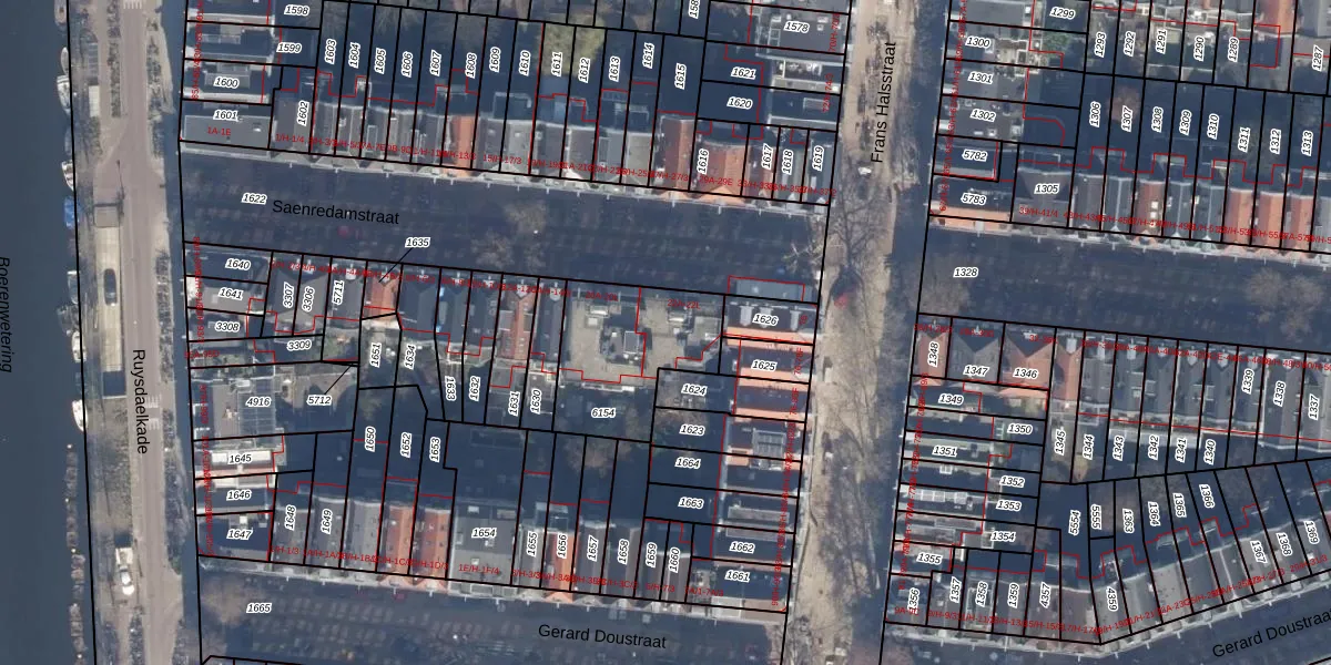 Het adres is gelegen op perceel 6154 in de sectie R en de kadastrale gemeente Amsterdam. De kadastrale aanduiding is aldus ASD14-R-6154. De gemiddelde perceeloppervlakte in de kadastrale gemeente Amsterdam is 354,38 m². Dit perceel is met zijn 461 m² dus groter dan gemiddeld. De grootste perceeloppervlakte in de kadastrale gemeente is 9,9 ha. De kleinste oppervlakte bedraagt 0 m². Er zijn 20 adressen aanwezig op het perceel. De laatste wijziging in het de Basisregistratie Kadaster (BRK) was op 06-10-2006.