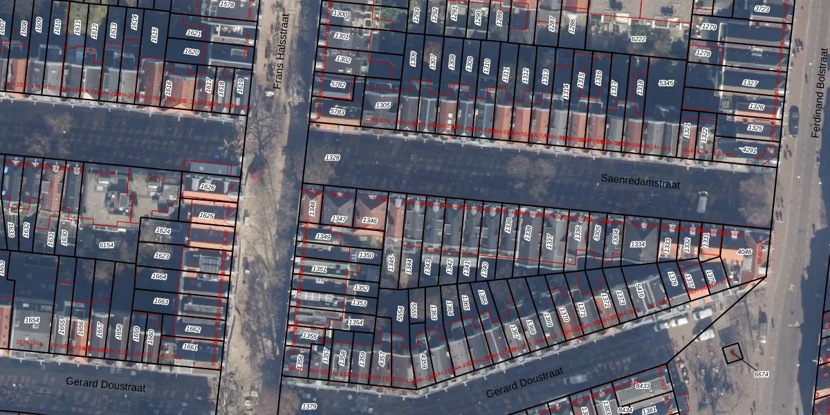 Het adres is gelegen op perceel 1344 in de sectie R en de kadastrale gemeente Amsterdam. De kadastrale aanduiding is aldus ASD14-R-1344. Het perceel is kleiner dan gemiddeld in Amsterdam. Het perceel is 105 m² groot, terwijl het gemiddelde ligt op 354,38 m². Het grootste perceel in de kadastrale gemeente is 9,9 ha. Het kleinste perceel heeft een oppervlakte van 0 m². Op het perceel zijn 4 adressen aanwezig. In de Basisregistratie Kadaster (BRK) werden de grenzen van het perceel geregistreerd op 06-10-2006.