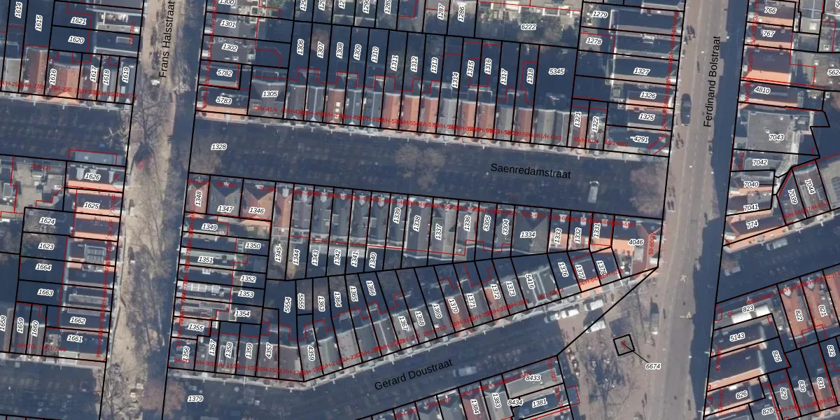 Het adres is gelegen op perceel 1338 in de sectie R en de kadastrale gemeente Amsterdam. De kadastrale aanduiding is aldus ASD14-R-1338. Het perceel is kleiner dan gemiddeld in Amsterdam. Het perceel is 105 m² groot, terwijl het gemiddelde ligt op 354,38 m². Het grootste perceel in de kadastrale gemeente is 9,9 ha. Het kleinste perceel heeft een oppervlakte van 0 m². Op het perceel liggen in totaal 7 adressen. In de Basisregistratie Kadaster (BRK) werden de grenzen van het perceel geregistreerd op 06-10-2006.