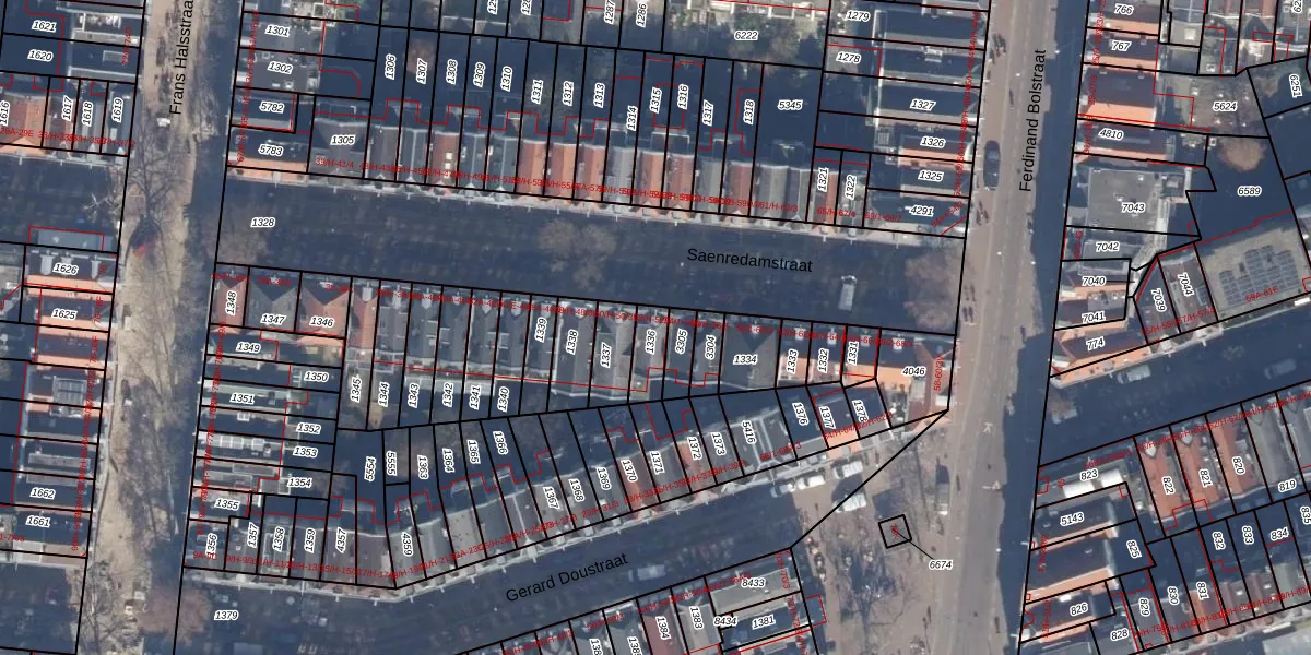 Het adres is gelegen op perceel 1336 in de sectie R en de kadastrale gemeente Amsterdam. De kadastrale aanduiding is aldus ASD14-R-1336. Het perceel is kleiner dan gemiddeld in Amsterdam. Het perceel is 78 m² groot, terwijl het gemiddelde ligt op 354,38 m². Het grootste perceel in de kadastrale gemeente is 9,9 ha. Het kleinste perceel heeft een oppervlakte van 0 m². Op het perceel zijn 4 adressen aanwezig. In de Basisregistratie Kadaster (BRK) werden de grenzen van het perceel geregistreerd op 06-10-2006.
