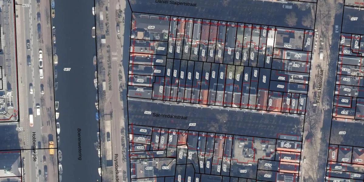 Het perceel waarop het adres ligt is ASD14-R-1605. De afkorting 'ASD14' staat voor kadastrale gemeente Amsterdam. Het perceel is kleiner dan gemiddeld in Amsterdam. Het perceel is 89 m² groot, terwijl het gemiddelde ligt op 354,38 m². De grootste perceeloppervlakte in de kadastrale gemeente is 9,9 ha. De kleinste oppervlakte bedraagt 0 m². Op het perceel zijn 5 adressen aanwezig. De huidige grenzen van het perceel zijn digitaal in de Basisregistratie Kadaster (BRK) geregistreerd op 06-10-2006.
