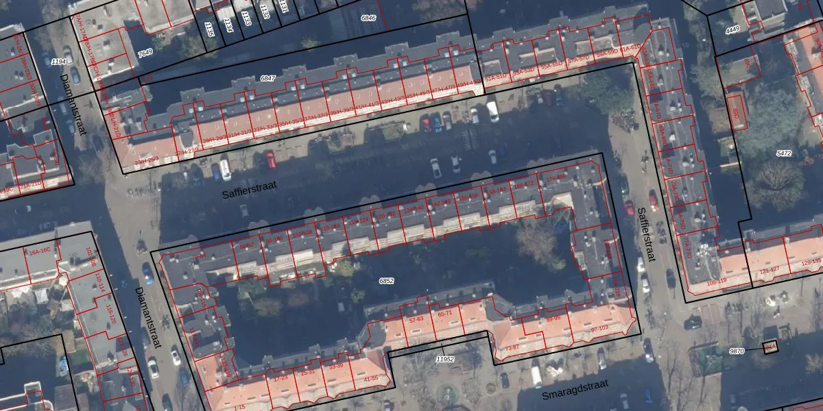 Saffierstraat 140 is gelegen op kadastraal perceel ASD18V6852. Deze kadastrale aanduiding is uniek en wordt gebruikt door het Kadaster om eigendomsrechten en andere zakelijke rechten vast te leggen. Het perceel maakt onderdeel uit van de kadastrale gemeente Amsterdam.