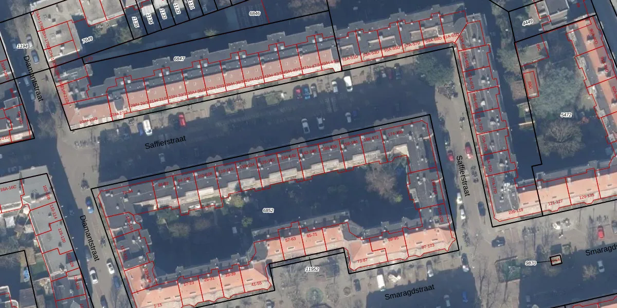 Saffierstraat 144 is gelegen op kadastraal perceel ASD18V6852. Deze kadastrale aanduiding is uniek en wordt gebruikt door het Kadaster om eigendomsrechten en andere zakelijke rechten vast te leggen. Het perceel maakt onderdeel uit van de kadastrale gemeente Amsterdam.