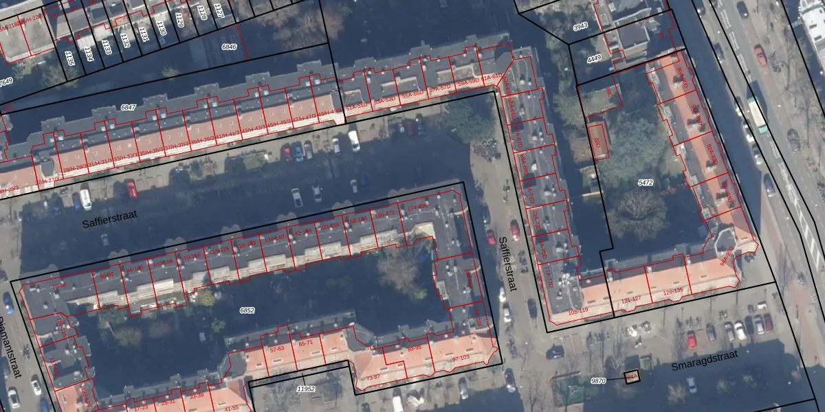 Saffierstraat 180 is gelegen op kadastraal perceel ASD18V6852. Deze kadastrale aanduiding is uniek en wordt gebruikt door het Kadaster om eigendomsrechten en andere zakelijke rechten vast te leggen. Het perceel maakt onderdeel uit van de kadastrale gemeente Amsterdam.