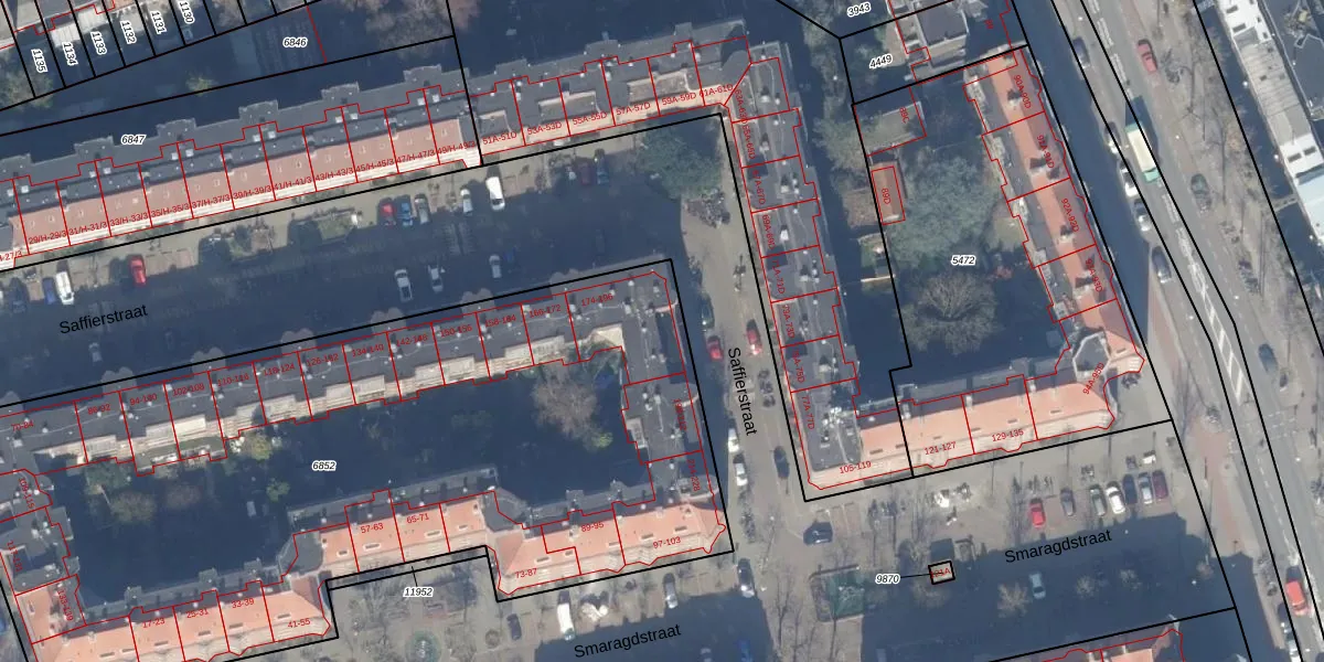 Saffierstraat 186 is gelegen op kadastraal perceel ASD18V6852. Deze kadastrale aanduiding is uniek en wordt gebruikt door het Kadaster om eigendomsrechten en andere zakelijke rechten vast te leggen. Het perceel maakt onderdeel uit van de kadastrale gemeente Amsterdam.