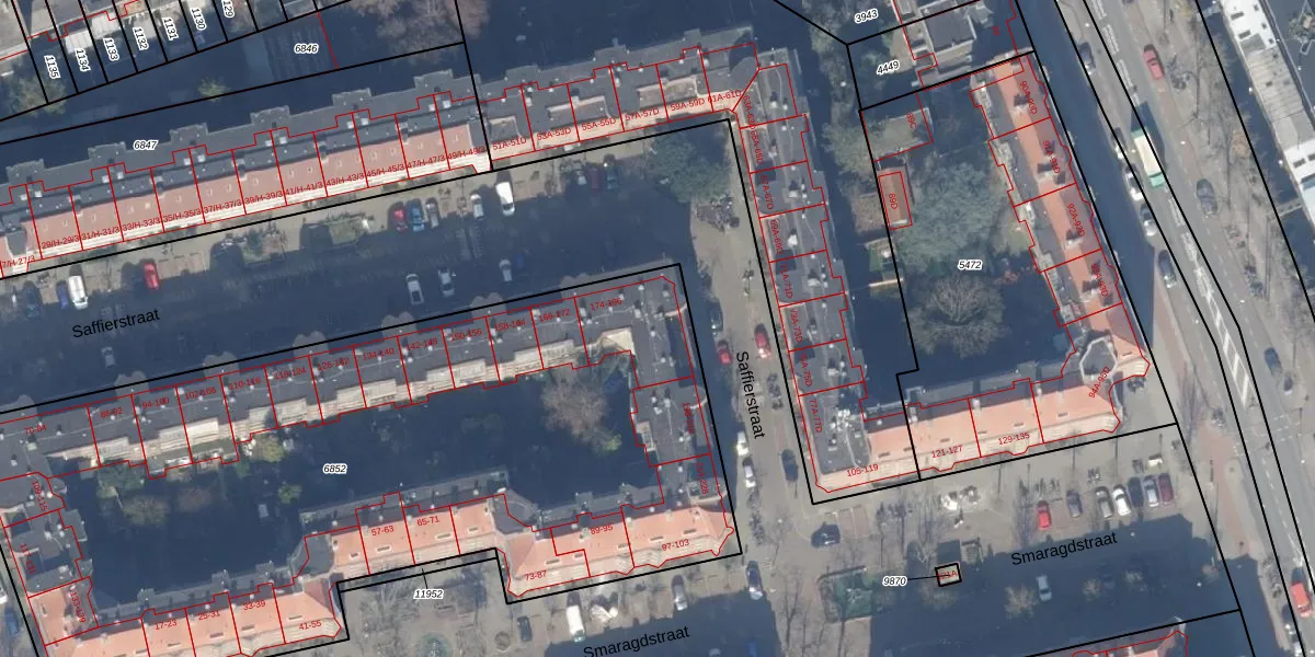 Saffierstraat 190 is gelegen op kadastraal perceel ASD18V6852. Deze kadastrale aanduiding is uniek en wordt gebruikt door het Kadaster om eigendomsrechten en andere zakelijke rechten vast te leggen. Het perceel maakt onderdeel uit van de kadastrale gemeente Amsterdam.