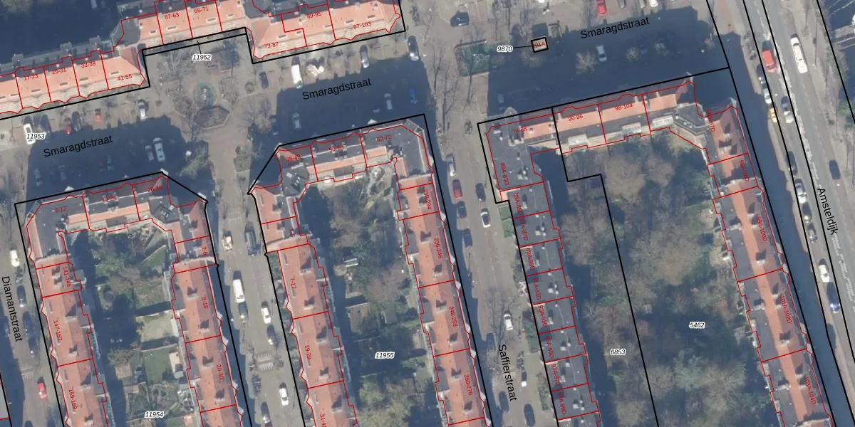 Saffierstraat 232 is gelegen op kadastraal perceel ASD18V11955. Deze kadastrale aanduiding is uniek en wordt gebruikt door het Kadaster om eigendomsrechten en andere zakelijke rechten vast te leggen. Het perceel maakt onderdeel uit van de kadastrale gemeente Amsterdam.