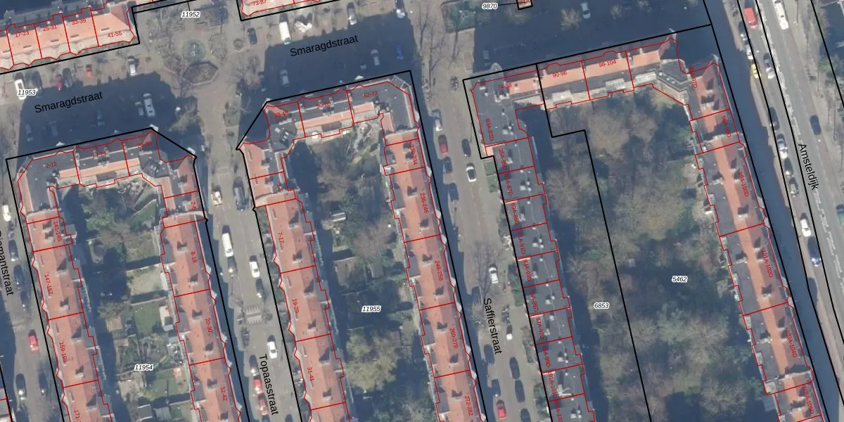 Saffierstraat 240 is gelegen op kadastraal perceel ASD18V11955. Deze kadastrale aanduiding is uniek en wordt gebruikt door het Kadaster om eigendomsrechten en andere zakelijke rechten vast te leggen. Het perceel maakt onderdeel uit van de kadastrale gemeente Amsterdam.
