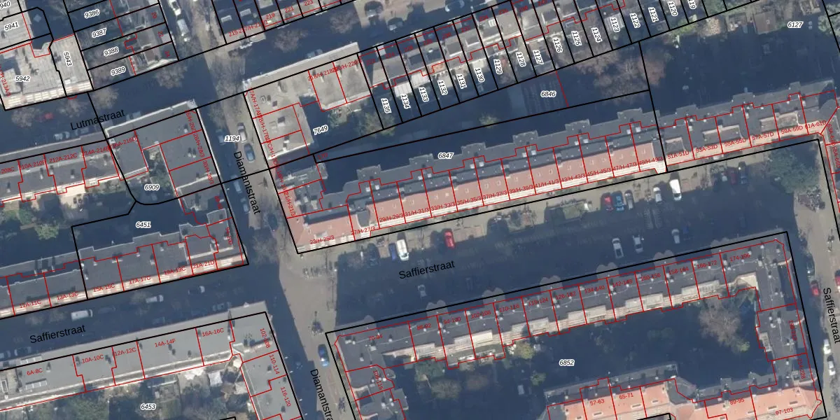Saffierstraat 31-1 is gelegen op kadastraal perceel ASD18V6847. Deze kadastrale aanduiding is uniek en wordt gebruikt door het Kadaster om eigendomsrechten en andere zakelijke rechten vast te leggen. Het perceel maakt onderdeel uit van de kadastrale gemeente Amsterdam.