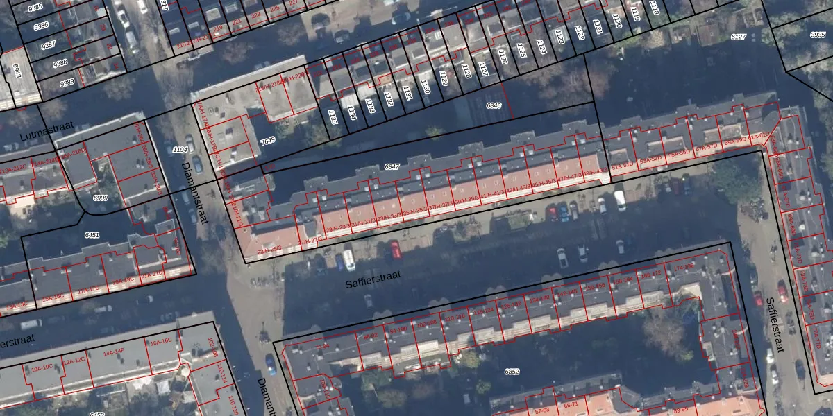 Het adres is gelegen op perceel 6847 in de sectie V en de kadastrale gemeente Amsterdam. De kadastrale aanduiding is aldus ASD18-V-6847. De gemiddelde perceeloppervlakte in de kadastrale gemeente Amsterdam is 559,23 m². Dit perceel is met zijn 1846 m² dus groter dan gemiddeld. De grootste perceeloppervlakte in de kadastrale gemeente is 12,5 ha. De kleinste oppervlakte bedraagt 0 m². Op het perceel zijn 63 adressen aanwezig. In de Basisregistratie Kadaster (BRK) werden de grenzen van het perceel geregistreerd op 17-10-2006.