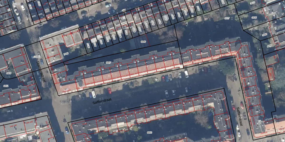 Saffierstraat 41-H is gelegen op kadastraal perceel ASD18V6847. Deze kadastrale aanduiding is uniek en wordt gebruikt door het Kadaster om eigendomsrechten en andere zakelijke rechten vast te leggen. Het perceel maakt onderdeel uit van de kadastrale gemeente Amsterdam.