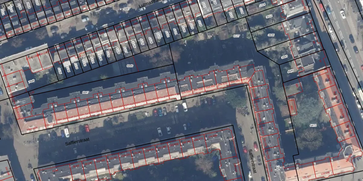 Het adres is gelegen op perceel 6127 in de sectie V en de kadastrale gemeente Amsterdam. De kadastrale aanduiding is aldus ASD18-V-6127. De gemiddelde perceeloppervlakte in de kadastrale gemeente Amsterdam is 559,23 m². Dit perceel is met zijn 2852 m² dus groter dan gemiddeld. De grootste perceeloppervlakte in de kadastrale gemeente is 12,5 ha. De kleinste oppervlakte bedraagt 0 m². Op het perceel zijn 64 adressen aanwezig. De huidige grenzen van het perceel zijn digitaal in de Basisregistratie Kadaster (BRK) geregistreerd op 17-10-2006.