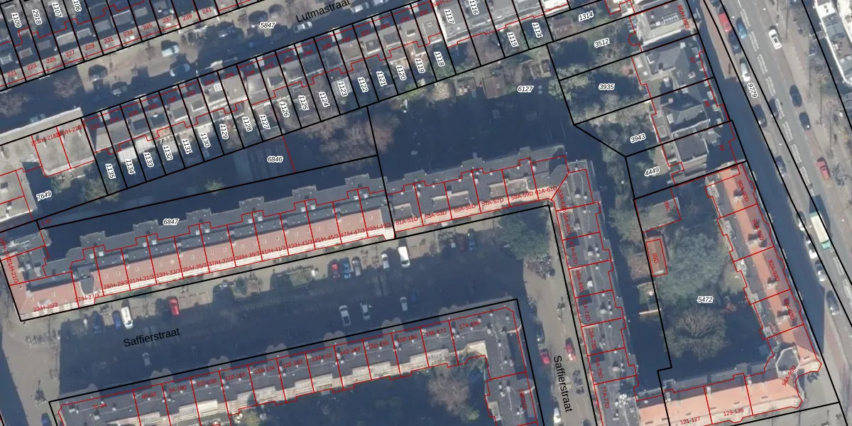 Saffierstraat 53-B is gelegen op kadastraal perceel ASD18V6127. Deze kadastrale aanduiding is uniek en wordt gebruikt door het Kadaster om eigendomsrechten en andere zakelijke rechten vast te leggen. Het perceel maakt onderdeel uit van de kadastrale gemeente Amsterdam.