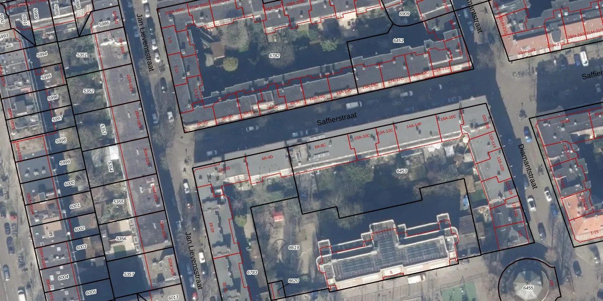 Saffierstraat 6-A is gelegen op kadastraal perceel ASD18V6453. Deze kadastrale aanduiding is uniek en wordt gebruikt door het Kadaster om eigendomsrechten en andere zakelijke rechten vast te leggen. Het perceel maakt onderdeel uit van de kadastrale gemeente Amsterdam.