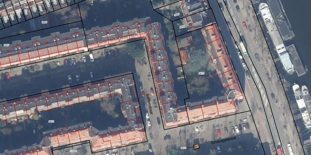 Het adres is gelegen op perceel 6127 in de sectie V en de kadastrale gemeente Amsterdam. De kadastrale aanduiding is aldus ASD18-V-6127. De gemiddelde perceeloppervlakte in de kadastrale gemeente Amsterdam is 559,23 m². Dit perceel is met zijn 2852 m² dus groter dan gemiddeld. Het grootste perceel in de kadastrale gemeente is 12,5 ha. Het kleinste perceel heeft een oppervlakte van 0 m². Op het perceel liggen in totaal 64 adressen. In de Basisregistratie Kadaster (BRK) werden de grenzen van het perceel geregistreerd op 17-10-2006.