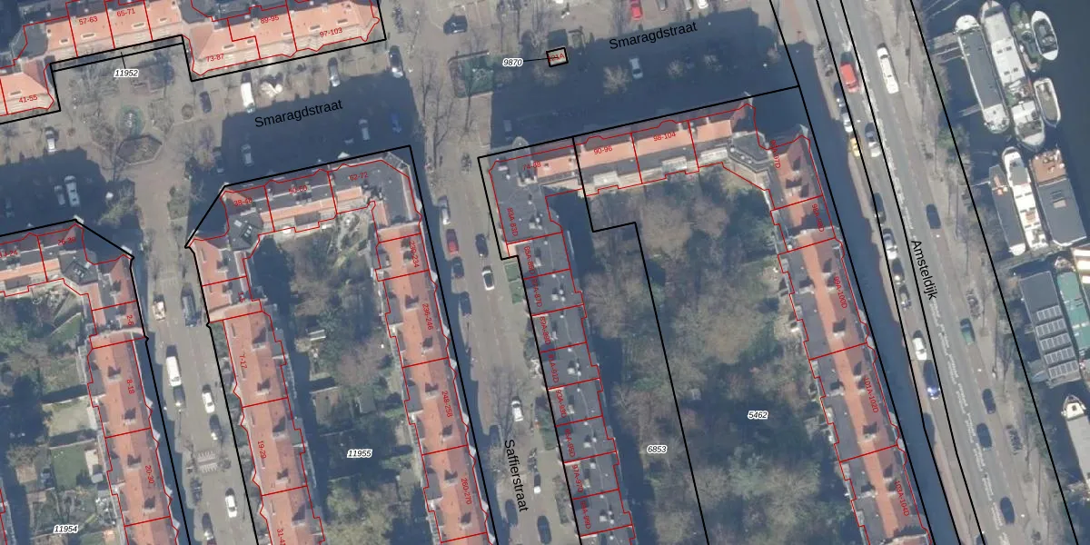 Saffierstraat 85-B is gelegen op kadastraal perceel ASD18V6853. Deze kadastrale aanduiding is uniek en wordt gebruikt door het Kadaster om eigendomsrechten en andere zakelijke rechten vast te leggen. Het perceel maakt onderdeel uit van de kadastrale gemeente Amsterdam.