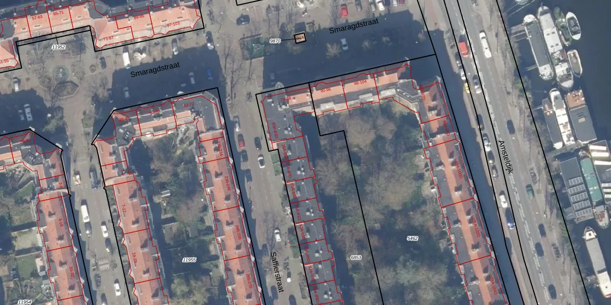 Het adres is gelegen op perceel 6853 in de sectie V en de kadastrale gemeente Amsterdam. De kadastrale aanduiding is aldus ASD18-V-6853. De gemiddelde perceeloppervlakte in de kadastrale gemeente Amsterdam is 559,23 m². Dit perceel is met zijn 2438 m² dus groter dan gemiddeld. Het grootste perceel in de kadastrale gemeente is 12,5 ha. Het kleinste perceel heeft een oppervlakte van 0 m². Op het perceel liggen in totaal 72 adressen. In de Basisregistratie Kadaster (BRK) werden de grenzen van het perceel geregistreerd op 17-10-2006.