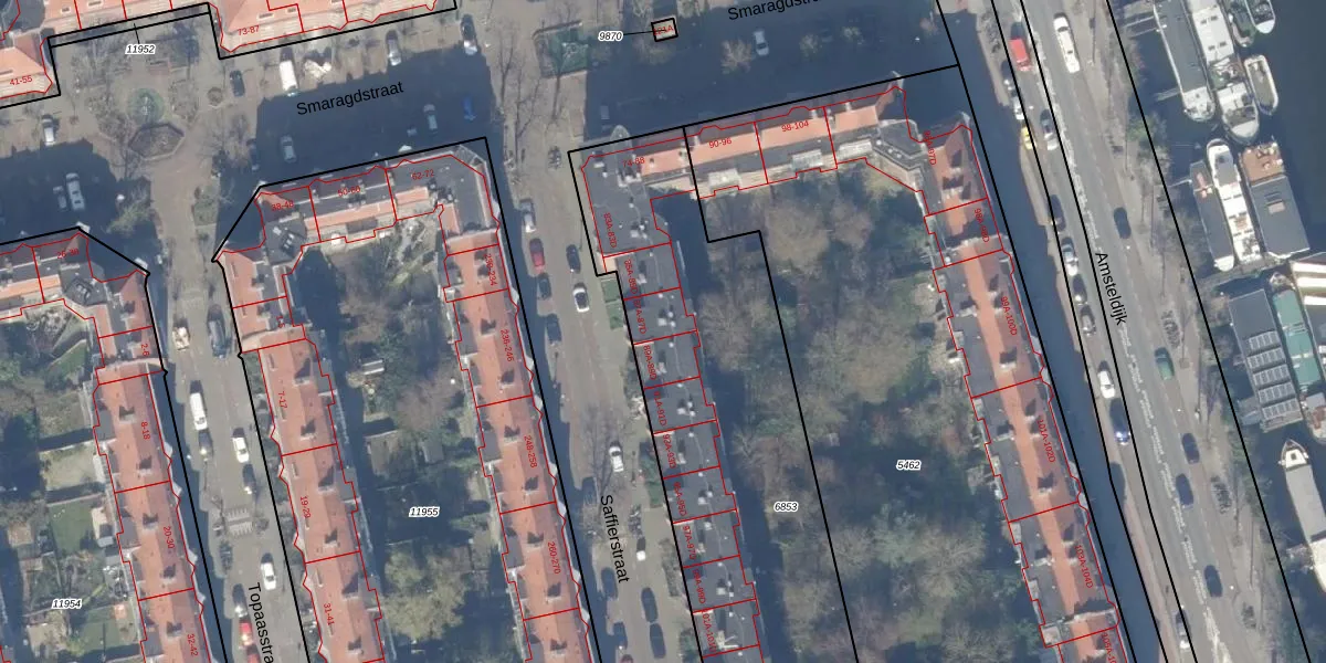 Saffierstraat 87-B is gelegen op kadastraal perceel ASD18V6853. Deze kadastrale aanduiding is uniek en wordt gebruikt door het Kadaster om eigendomsrechten en andere zakelijke rechten vast te leggen. Het perceel maakt onderdeel uit van de kadastrale gemeente Amsterdam.