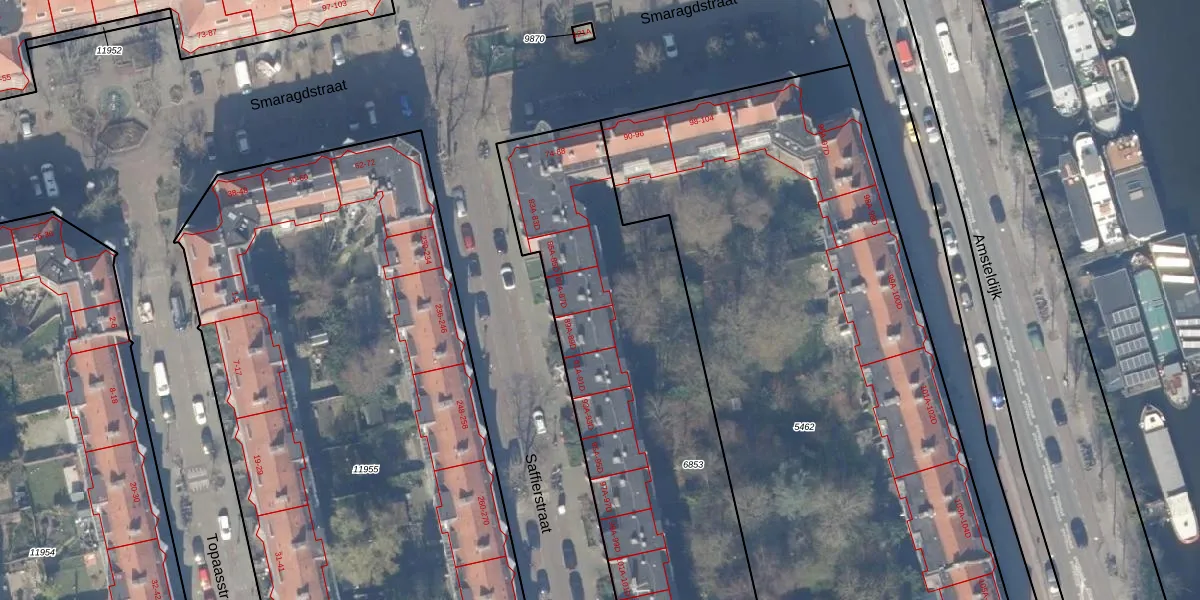Saffierstraat 87-D is gelegen op kadastraal perceel ASD18V6853. Deze kadastrale aanduiding is uniek en wordt gebruikt door het Kadaster om eigendomsrechten en andere zakelijke rechten vast te leggen. Het perceel maakt onderdeel uit van de kadastrale gemeente Amsterdam.
