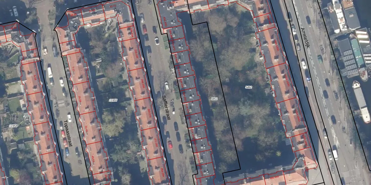 Saffierstraat 95-A is gelegen op kadastraal perceel ASD18V6853. Deze kadastrale aanduiding is uniek en wordt gebruikt door het Kadaster om eigendomsrechten en andere zakelijke rechten vast te leggen. Het perceel maakt onderdeel uit van de kadastrale gemeente Amsterdam.