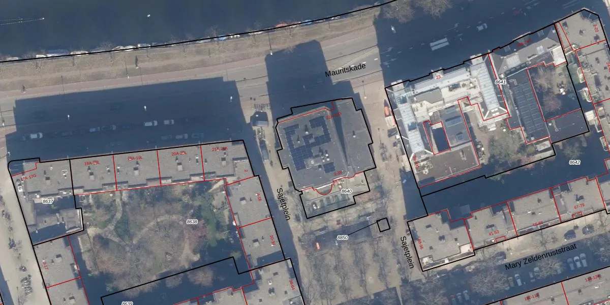 Sajetplein 23 is gelegen op kadastraal perceel ASD15S8640. Deze kadastrale aanduiding is uniek en wordt gebruikt door het Kadaster om eigendomsrechten en andere zakelijke rechten vast te leggen. Het perceel maakt onderdeel uit van de kadastrale gemeente Amsterdam.