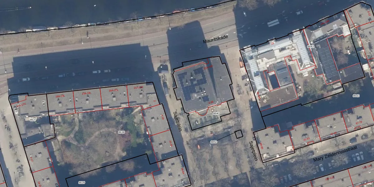 Het adres ligt op het perceel ASD15-S-8640, dat zich in de kadastrale gemeente Amsterdam bevindt. De gemiddelde perceeloppervlakte in de kadastrale gemeente Amsterdam is 537,06 m². Dit perceel is met zijn 911 m² dus groter dan gemiddeld. Het grootste perceel in de kadastrale gemeente is 14,5 ha. Het kleinste perceel heeft een oppervlakte van 0 m². Op het perceel liggen in totaal 23 adressen. De huidige grenzen van het perceel zijn digitaal in de Basisregistratie Kadaster (BRK) geregistreerd op 22-11-2006.