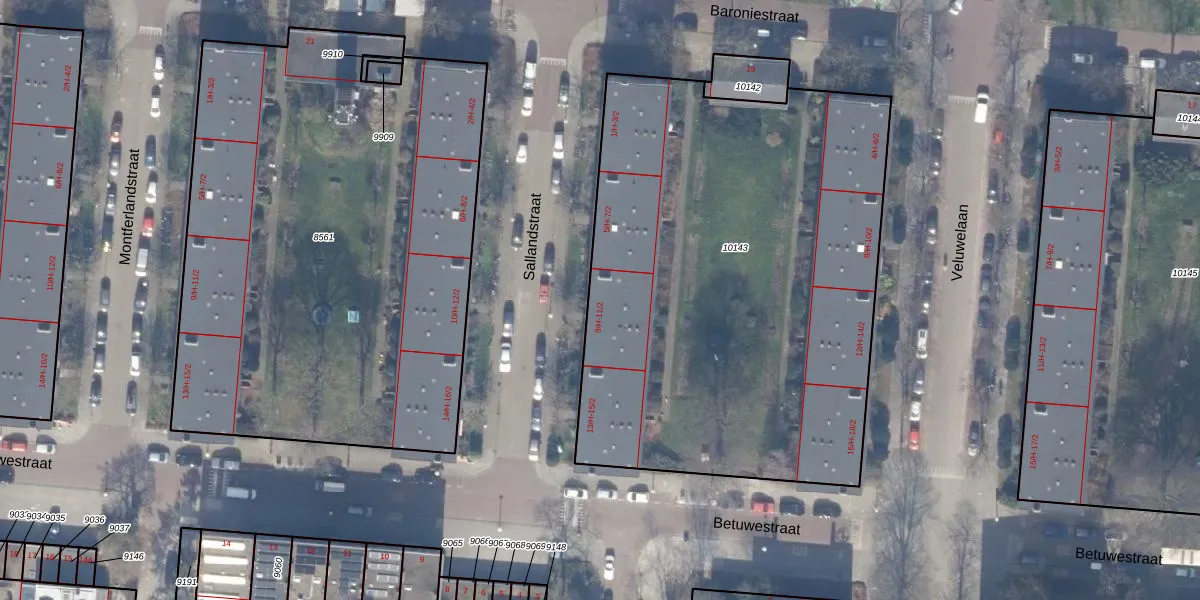 Het perceel waarop Sallandstraat 9-2 staat heeft een oppervlakte van 3067 m². Dit is een zeer groot perceel. De perceeloppervlakte wordt geregistreerd door het Kadaster. Gedetailleerde informatie over de maten van dit perceel kunt u vinden in het rapport Kadastrale kaart met maatvoering van Sallandstraat 9-2.