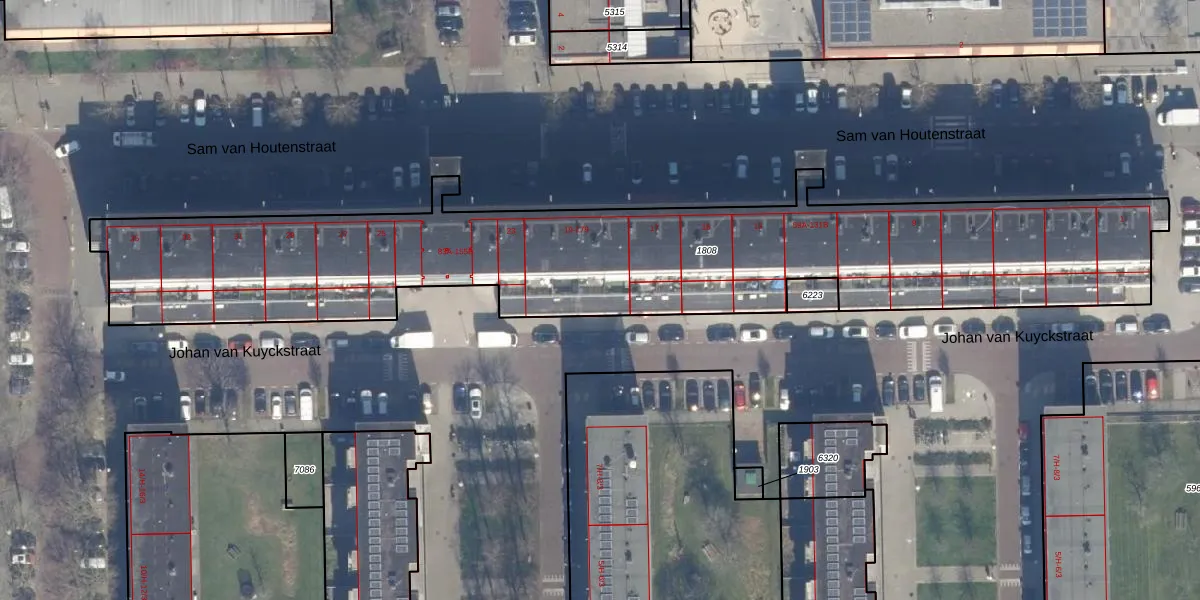 Het perceel waarop Sam van Houtenstraat 123 staat heeft een oppervlakte van 3002 m². Dit is een zeer groot perceel. De perceeloppervlakte wordt geregistreerd door het Kadaster. Gedetailleerde informatie over de maten van dit perceel kunt u vinden in het rapport Kadastrale kaart met maatvoering van Sam van Houtenstraat 123.