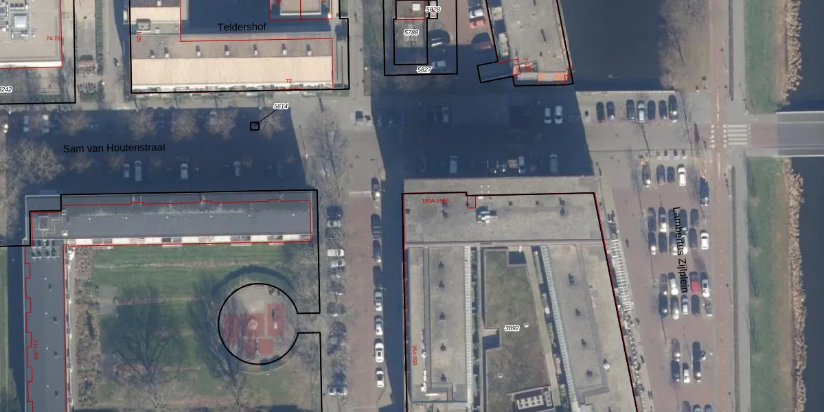 Het perceel waarop Sam van Houtenstraat 185-B staat heeft een oppervlakte van 3491 m². Dit is een zeer groot perceel. De perceeloppervlakte wordt geregistreerd door het Kadaster. Gedetailleerde informatie over de maten van dit perceel kunt u vinden in het rapport Kadastrale kaart met maatvoering van Sam van Houtenstraat 185-B.