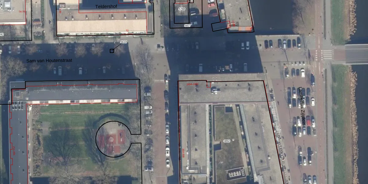 Het perceel waarop Sam van Houtenstraat 185-H staat heeft een oppervlakte van 3491 m². Dit is een zeer groot perceel. De perceeloppervlakte wordt geregistreerd door het Kadaster. Gedetailleerde informatie over de maten van dit perceel kunt u vinden in het rapport Kadastrale kaart met maatvoering van Sam van Houtenstraat 185-H.