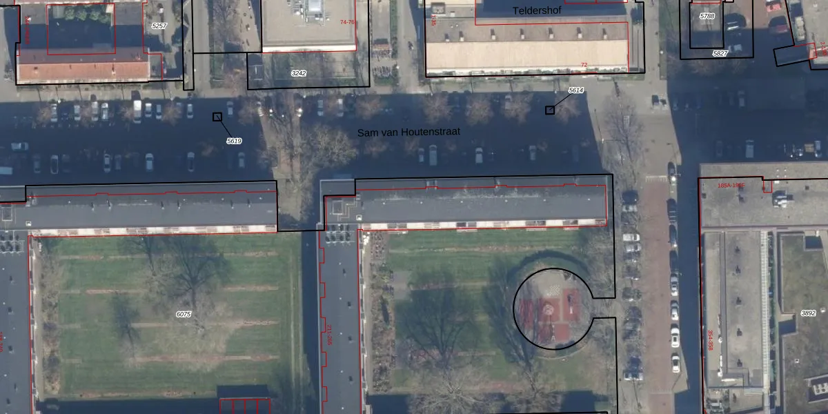 Het perceel waarop Sam van Houtenstraat 209-A staat heeft een oppervlakte van 8487 m². Dit is een zeer groot perceel. De perceeloppervlakte wordt geregistreerd door het Kadaster. Gedetailleerde informatie over de maten van dit perceel kunt u vinden in het rapport Kadastrale kaart met maatvoering van Sam van Houtenstraat 209-A.