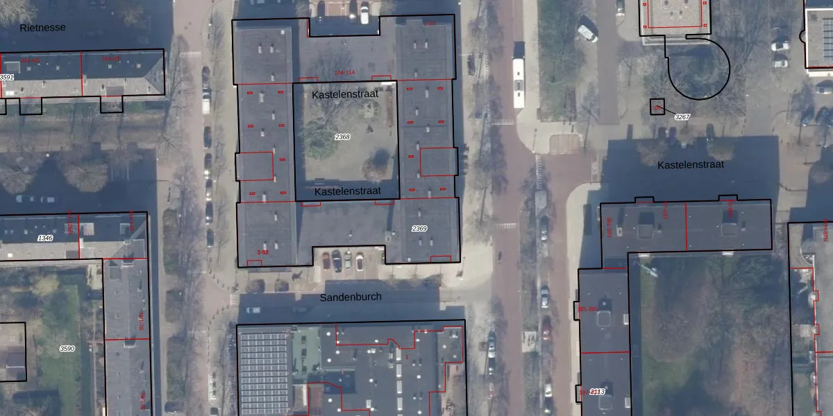 Het perceel waarop Sandenburch 4 staat heeft een oppervlakte van 2278 m². Dit is een zeer groot perceel. De perceeloppervlakte wordt geregistreerd door het Kadaster. Gedetailleerde informatie over de maten van dit perceel kunt u vinden in het rapport Kadastrale kaart met maatvoering van Sandenburch 4.
