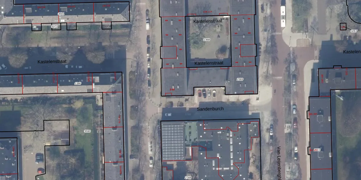 Het perceel waarop Sandenburch 46 staat heeft een oppervlakte van 2278 m². Dit is een zeer groot perceel. De perceeloppervlakte wordt geregistreerd door het Kadaster. Gedetailleerde informatie over de maten van dit perceel kunt u vinden in het rapport Kadastrale kaart met maatvoering van Sandenburch 46.