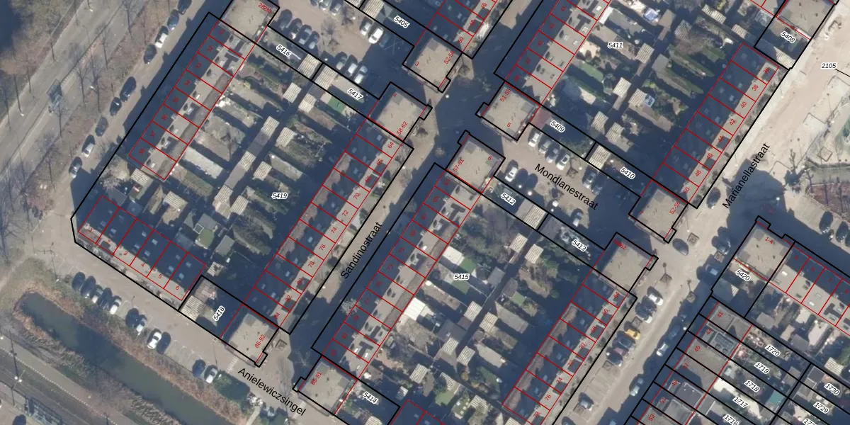 Sandinostraat 67 is gelegen op kadastraal perceel STN02G5415. Deze kadastrale aanduiding is uniek en wordt gebruikt door het Kadaster om eigendomsrechten en andere zakelijke rechten vast te leggen. Het perceel maakt onderdeel uit van de kadastrale gemeente Sloten Noord-Holland.