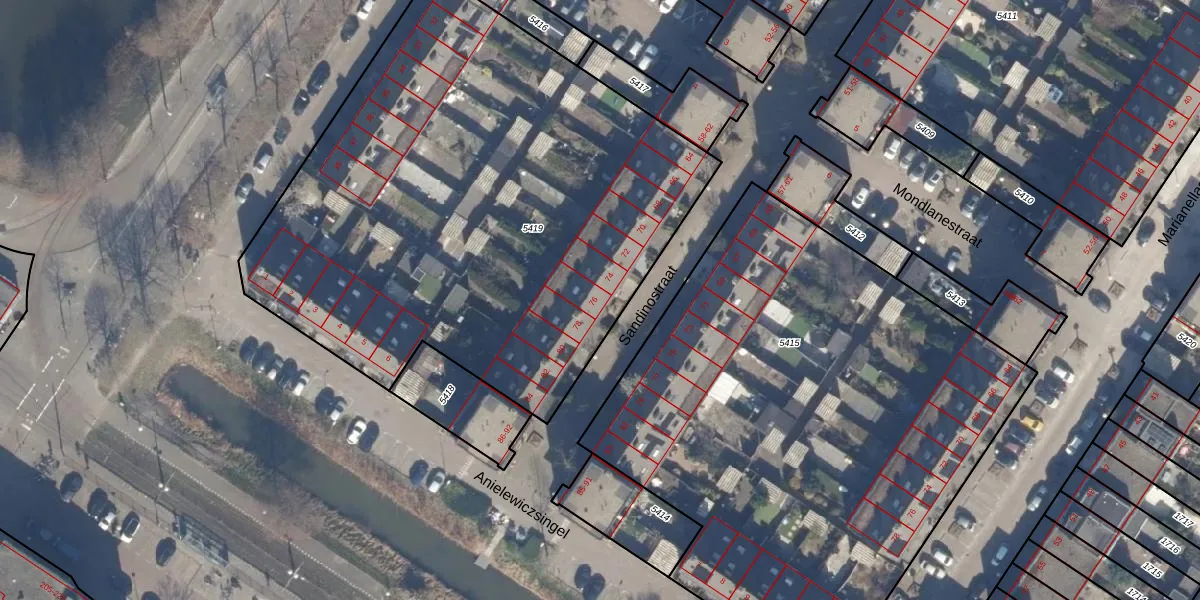 Sandinostraat 76 is gelegen op kadastraal perceel STN02G5419. Deze kadastrale aanduiding is uniek en wordt gebruikt door het Kadaster om eigendomsrechten en andere zakelijke rechten vast te leggen. Het perceel maakt onderdeel uit van de kadastrale gemeente Sloten Noord-Holland.