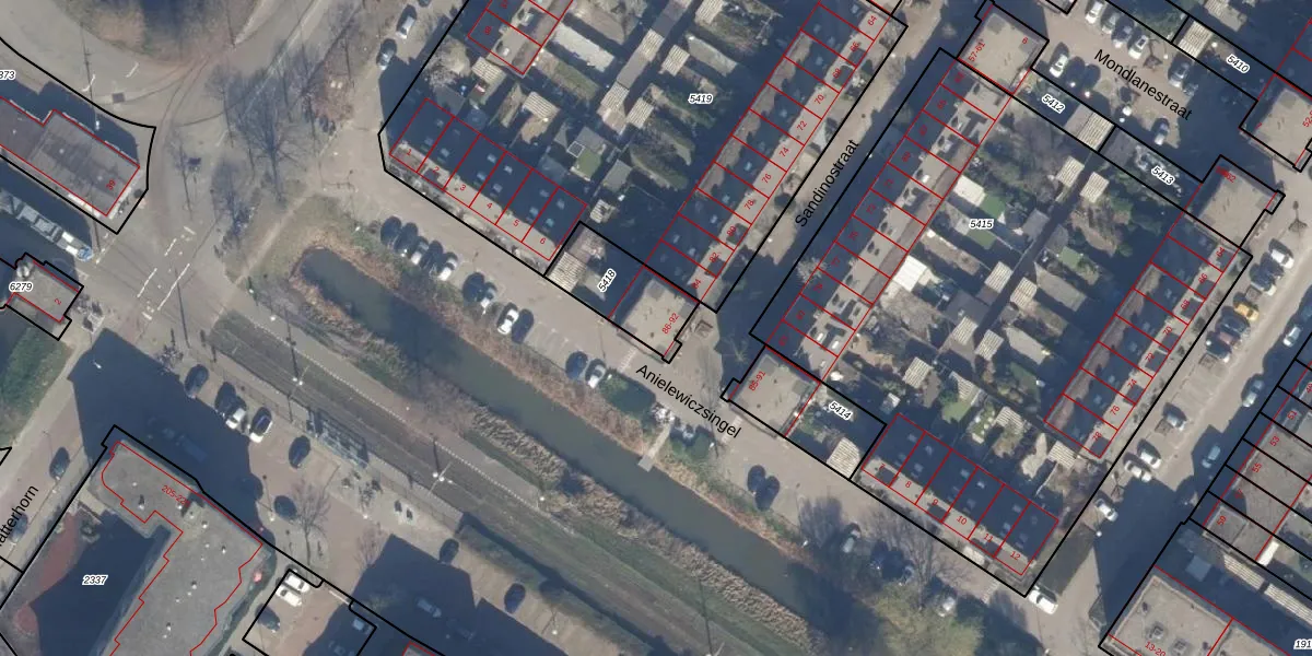 Het perceel waarop Sandinostraat 90 staat heeft een oppervlakte van 227 m². Dit is een middelgroot perceel. De perceeloppervlakte wordt geregistreerd door het Kadaster. Gedetailleerde informatie over de maten van dit perceel kunt u vinden in het rapport Kadastrale kaart met maatvoering van Sandinostraat 90.