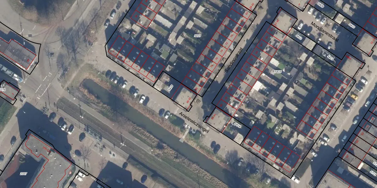 Het perceel waarop Sandinostraat 92 staat heeft een oppervlakte van 227 m². Dit is een middelgroot perceel. De perceeloppervlakte wordt geregistreerd door het Kadaster. Gedetailleerde informatie over de maten van dit perceel kunt u vinden in het rapport Kadastrale kaart met maatvoering van Sandinostraat 92.