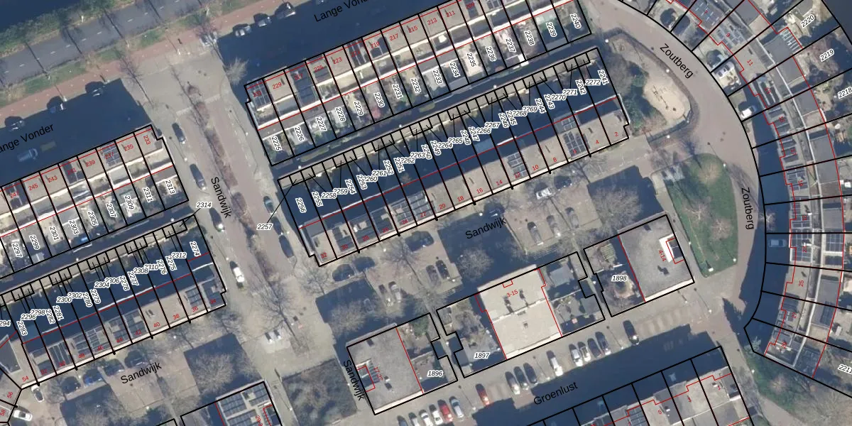 Het perceel waarop Sandwijk 22 staat heeft een oppervlakte van 102 m². Dit is een middelgroot perceel. De perceeloppervlakte wordt geregistreerd door het Kadaster. Gedetailleerde informatie over de maten van dit perceel kunt u vinden in het rapport Kadastrale kaart met maatvoering van Sandwijk 22.